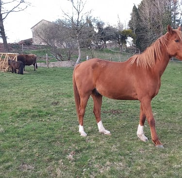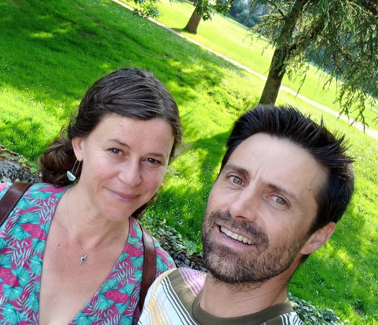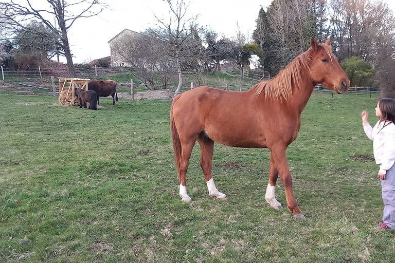 Stéphanie (48ans) et Claude (46) sont les "parents" et nous vivons là avec nos 3 enfants (bien que moins souvent présents suivant leurs parcours) Louisa (16ans), Joseph (14) et Rose (10) ainsi que toute la joyeuse ménagerie: Noisette la vache, Gobi le cheval pur sang arable et Zirko le Sheltland, 6 à 12 chèvres, 2 à 3 cochons, une quinzaine de poules, quelques oies, 3 chats et un chien... (mais tout cela peut varier au fil des années!...)